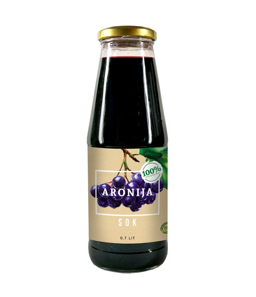 100% prirodan sok aronije, bez dodataka šećera, vode, aditiva, veštačkih boja i konzervansa. Ovaj sok je bogat vitaminima, mineralima i antioksidantima, a svi sastojci dolaze iz prirode.